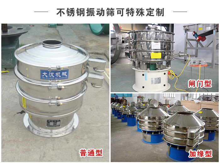 不銹鋼振動(dòng)篩可按特殊需求特殊定制,是否需要特殊設(shè)計(jì)定制,如“加緣型、閘門型、密封型,或是框體、底座加高,進(jìn)料口加料斗等,滿足客戶因場(chǎng)地大小高低配套使用的不同需求。