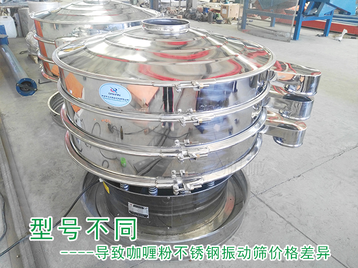 3)型號(hào)不同,導(dǎo)致咖喱粉不銹鋼振動(dòng)篩價(jià)格差異