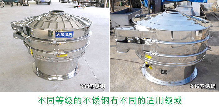 白砂糖不銹鋼振動篩在材質(zhì)上可分為304不銹鋼材質(zhì)與316不銹鋼兩種,316不銹鋼材質(zhì)適合對現(xiàn)場環(huán)境有高要求的客戶選擇,這兩種材質(zhì)根據(jù)不同型號的選擇差價在1000-7000元左右。