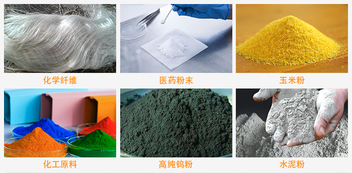 冶金行業(yè):鋁粉、銅粉、合金粉、二氧化錳、電磁性材料、耐火材料、氧化鋁、石英砂、氧化鈦、氧化鋅、金屬粉末、焊條粉末等