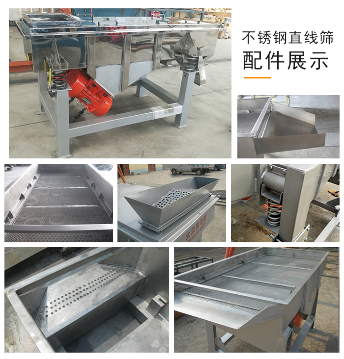 不銹鋼直線振動篩,采用304或316材質(zhì)的不銹鋼精制而成,具有防腐、防銹、耐高溫的特點。