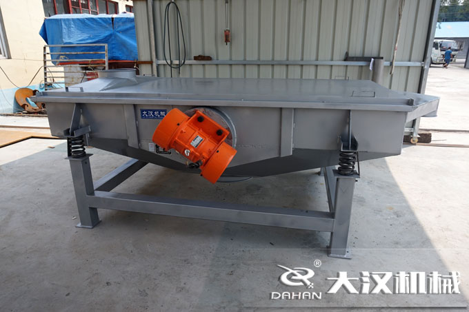 DZSF系列直線(xiàn)振動(dòng)篩(長(zhǎng)方形振動(dòng)篩)為雙振動(dòng)電機(jī)驅(qū)動(dòng)。當(dāng)兩臺(tái)振動(dòng)電機(jī)做同步、反向旋轉(zhuǎn)時(shí),其偏心塊所產(chǎn)生的激振力在平行于電機(jī)軸線(xiàn)的方向相互抵消,在垂直于電機(jī)軸的方向疊為一合力,因此篩機(jī)的運(yùn)動(dòng)軌跡為一直線(xiàn)。兩電機(jī)軸相對(duì)篩面在垂直方向有一傾角,在激振力和物料自重力的合力作用下,物料在篩面上被拋起跳躍或向前作直線(xiàn)運(yùn)動(dòng),從而達(dá)到對(duì)物料進(jìn)行篩選和分級(jí)的目的。適用于粒度在0.074―5mm,含水量小于7%,無(wú)粘性的各種干式粉狀或顆粒狀物料的篩分。大給料粒度不大于10mm.。